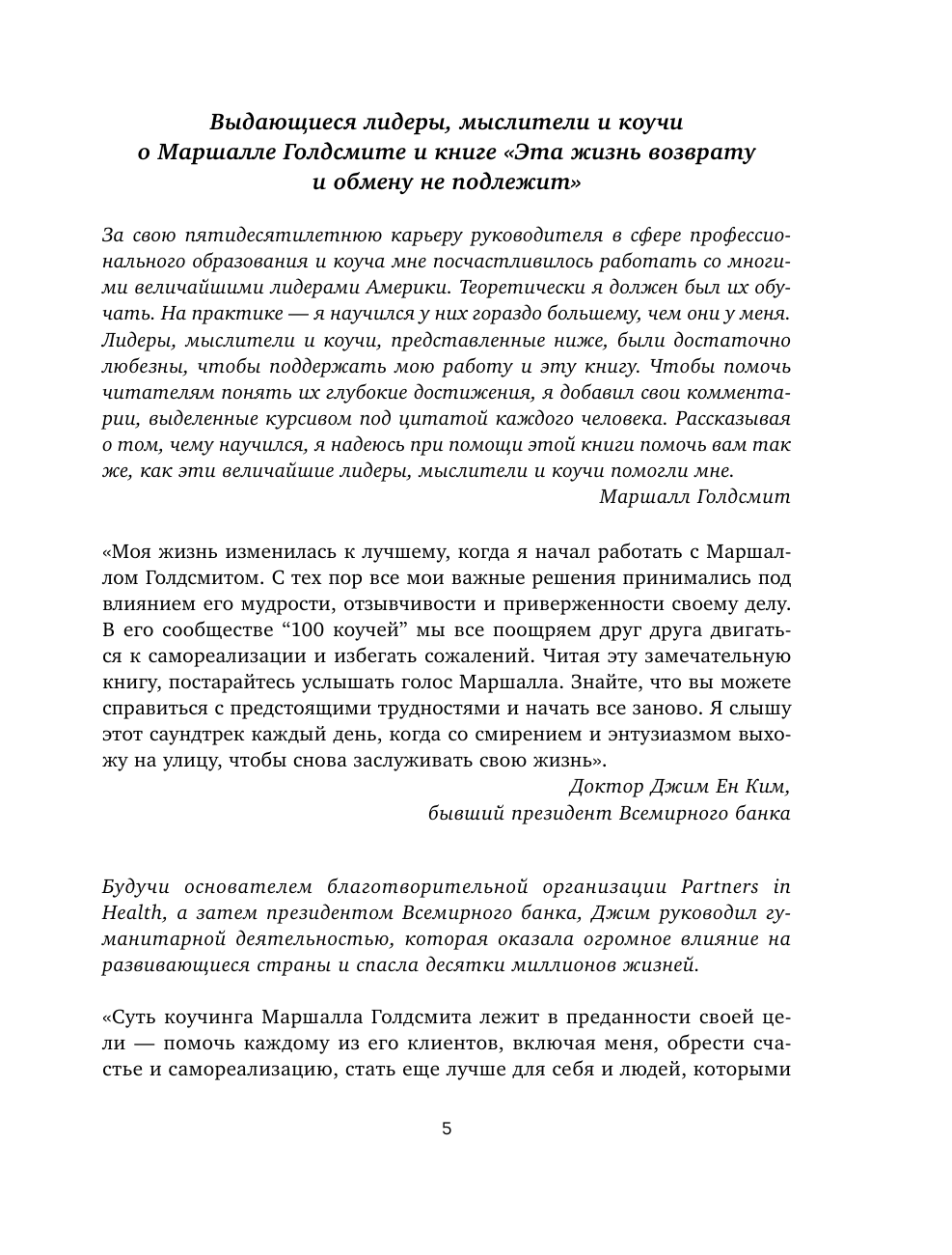 В своей новой книге М. Голдсмит учит читателей избегать великой болезни под названием «Я буду счастлив, когда…». Он предлагает практические советы и упражнения, направленные на то, чтобы избавиться от препятствий, мешающих нам наслаждаться жизнью и достигать поставленных целей. Используя эту книгу в качестве руководства, вы сможете сократить разрыв между тем, куда вы хотите попасть, и тем, где вы на самом деле, при этом избежав экзистенциального кризиса и самобичевания.
