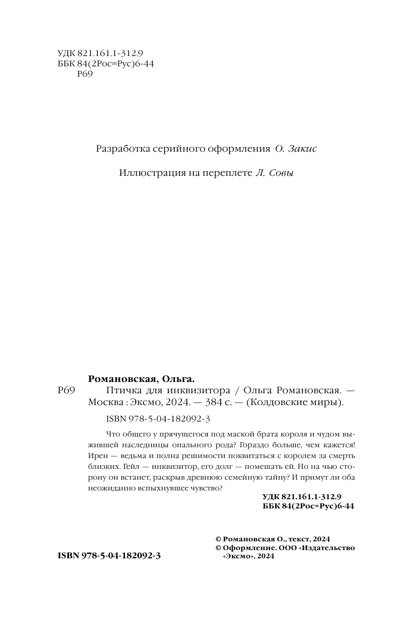 Книга: Птичка для инквизитора (Ольга Романовская); Эксмо, Редакция 1, 2023