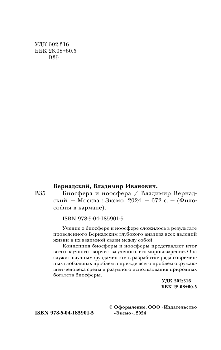 Книга: Биосфера и ноосфера (Вернадский Владимир Иванович); ООО "Издательство "Эксмо", 2023