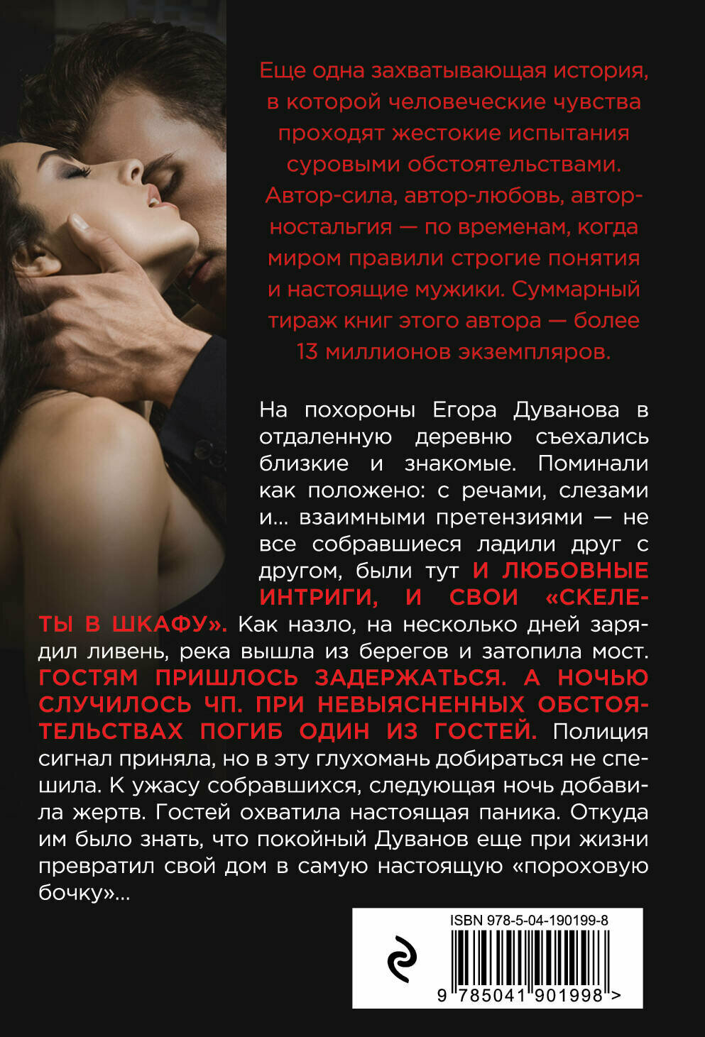 На похороны Егора Дуванова в отдаленную деревню съехались близкие и знакомые. Поминали как положено: с речами, со слезами и… с взаимными претензиями — не все собравшиеся ладили друг с другом, были тут и любовные интриги, и свои «скелеты в шкафу». Как назло, на несколько дней зарядил ливень, река вышла из берегов и затопила мост. Гостям пришлось задержаться. А ночью случилось ЧП. При невыясненных обстоятельствах погиб один из гостей. Полиция сигнал приняла, но в эту глухомань добираться не спешила. К ужасу собравшихся, следующая ночь добавила жертв. Гостей охватила настоящая паника. Откуда им было знать, что покойный Дуванов еще при жизни превратил свой дом в самую настоящую «пороховую бочку»…