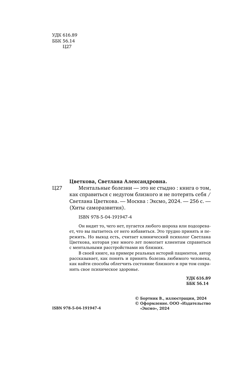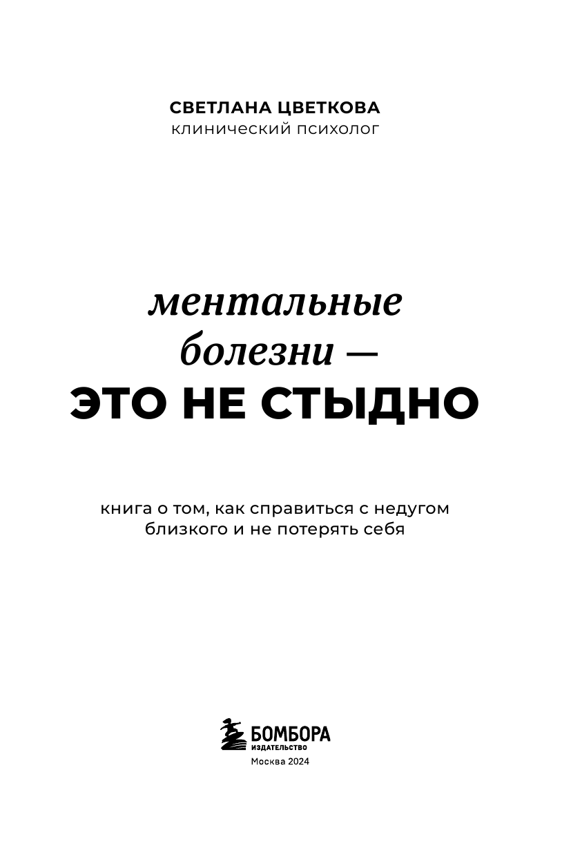 Ментальные болезни – это не стыдно. Книга о том как справиться с недугом близкого и не потерять себя (Светлана Цветкова); Эксмо, БОМБОРА, 2023
