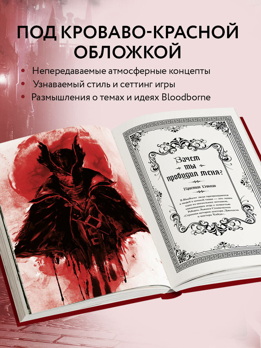 Внутри вы найдете множество красочных иллюстраций, эссе и интервью, которые с самых разных сторон освещают мир, темы и идеи Bloodborne, а также ее культурное наследие.