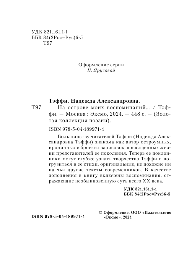 На острове моих воспоминаний... (Надежда Тэффи); Эксмо, Редакция 1, 2023