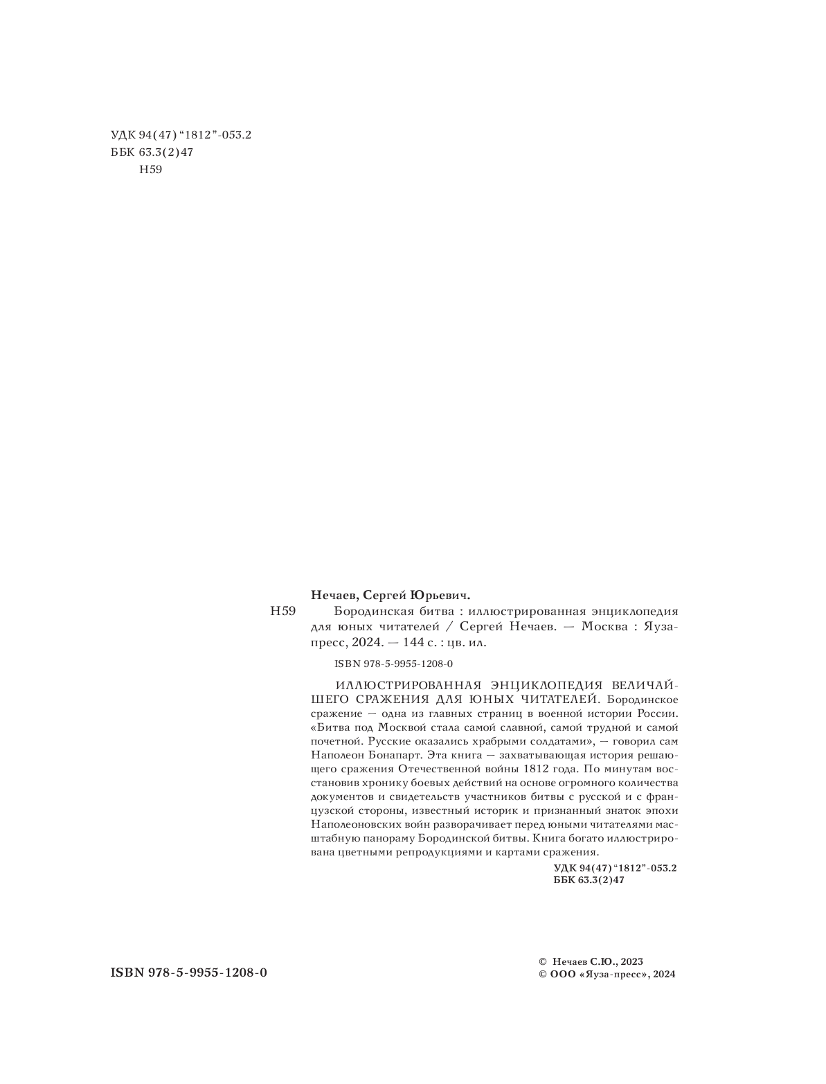 Бородинская битва. Главное сражение Отечественной войны 1812 года (Нечаев Сергей Юрьевич); Яуза-пресс ООО, 2024