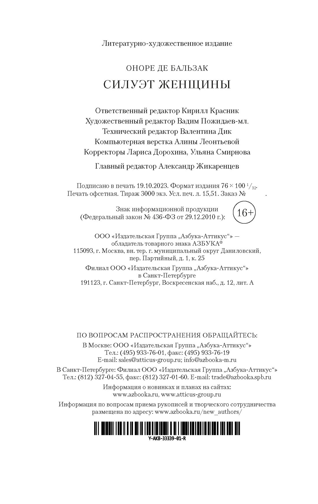 Книга: Силуэт женщины (Бальзак Оноре де); Азбука Издательство, 2023