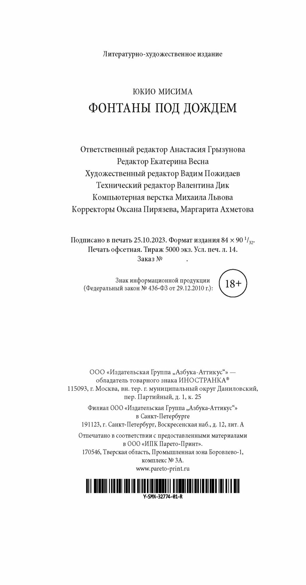 Книга: Фонтаны под дождем (Юкио Мисима); Иностранка, 2024