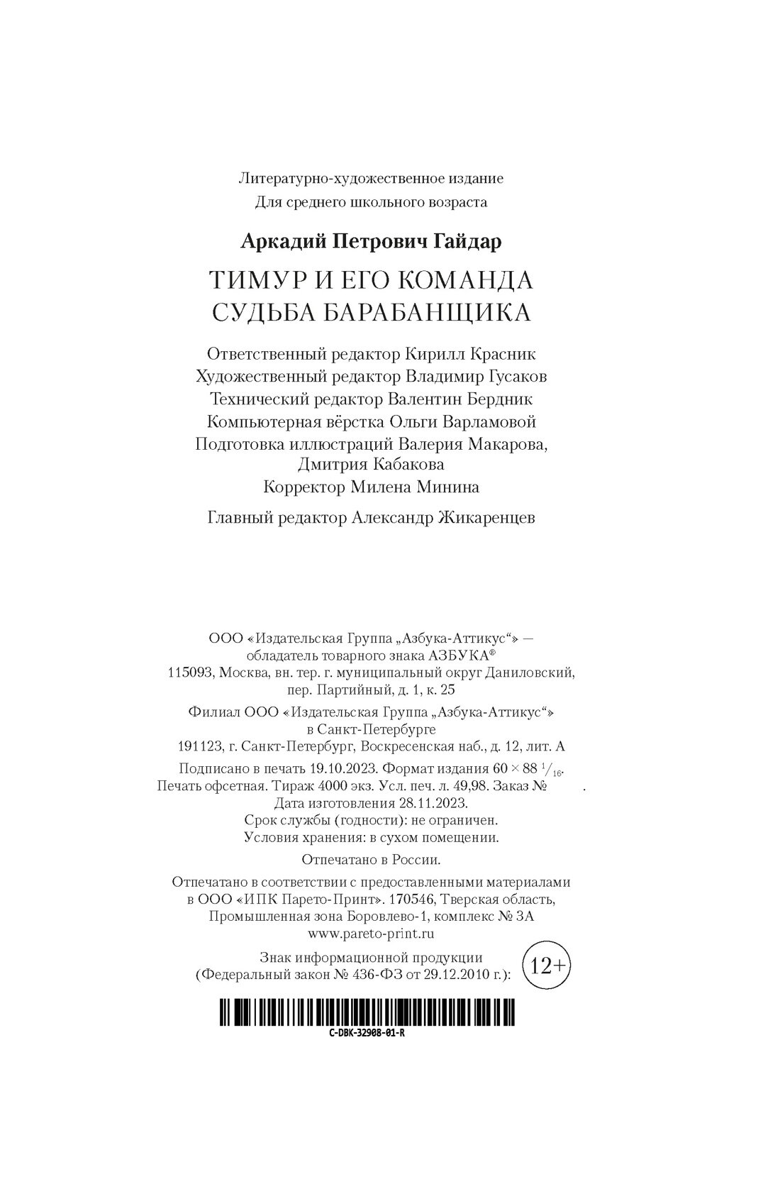 Тимур и его команда. Судьба барабанщика (Аркадий Гайдар); Азбука, 2023
