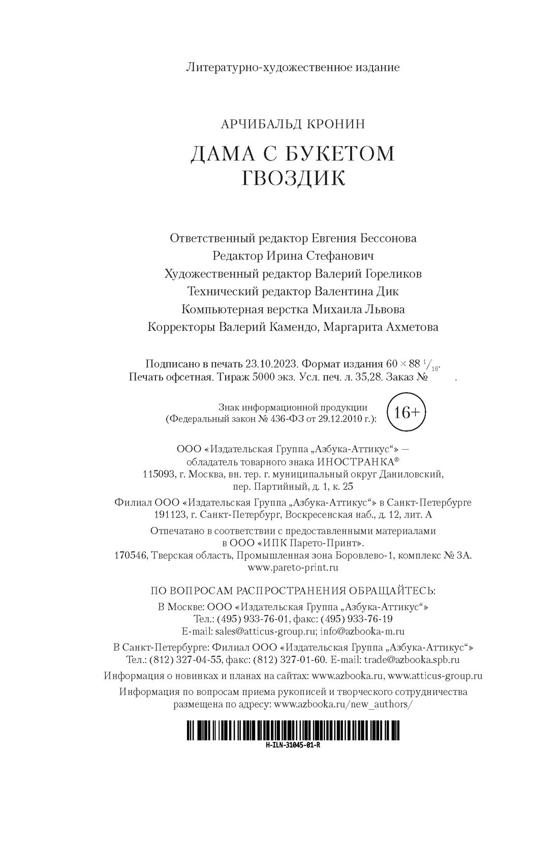 Книга: Дама с букетом гвоздик (Арчибальд Кронин); Иностранка, 2025