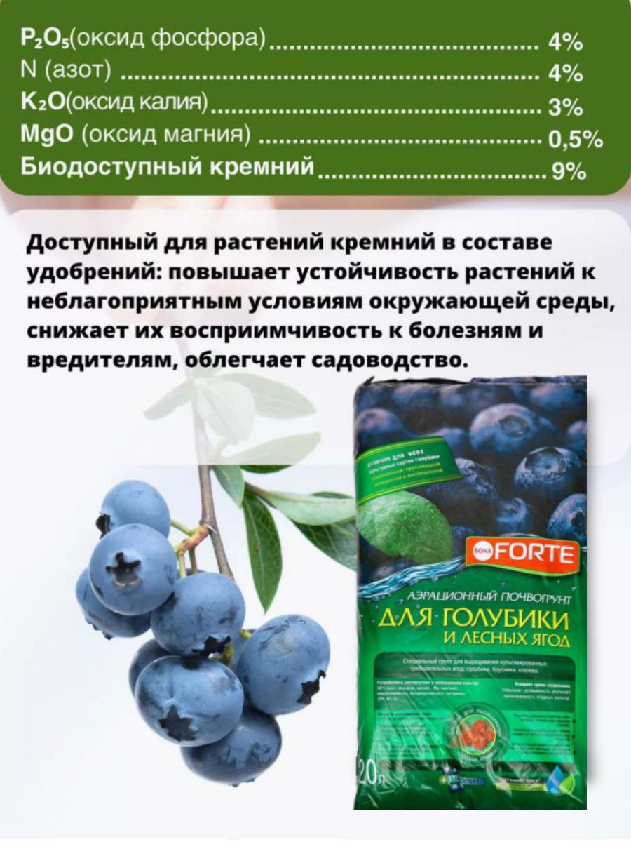 - Грунт и удобрение для голубики, клюквы, вереска и других кислотолюбивых растений от Bona Forte