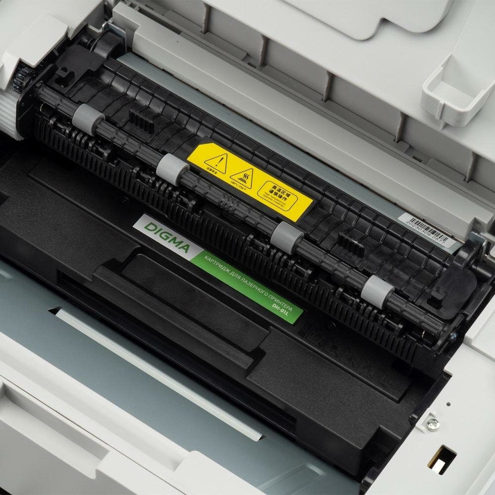 \r\nЛазерный принтер обладает высокой скоростью печати: до 24 страниц в минуту. Это поможет быстро распечатывать документы, чтобы сэкономить время для других важных задач. Модель комплектуется стартовым картриджем внушительного объема. Он рассчитан на 2000 отпечатков. При домашнем использовании такого объема может хватить на целый год и более. Обслуживание принтера отличается исключительным удобством и простотой. Одно из впечатляющих достоинств устройства – недорогие оригинальные картриджи серии DIGMA DH-01 на 1500, 2000 и 3500 страниц. Кроме того, не контролирует чип картриджа, а оригинальный картридж вообще не имеет чипа. Это позволяет при необходимости использовать совместимый картридж из массово доступных на рынке моделей, например, широко распространенные Cactus CS-S1660S.