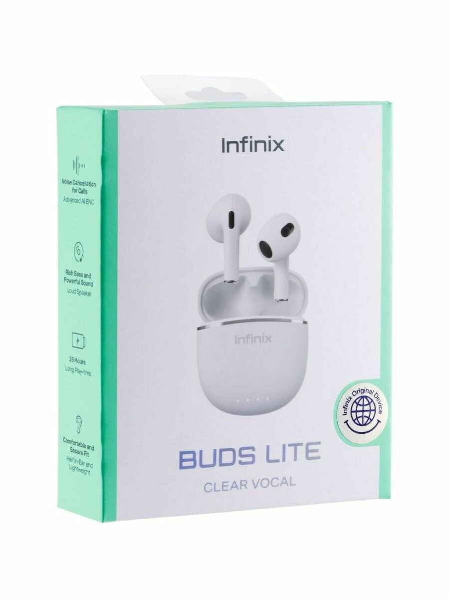 Шумоподавление во время разговора В наушниках Infinix Earphone Buds используется специальная технология шумоподавления, которая нивелирует посторонние звуки во время разговора. До 25 часов работы Полностью заряженные Buds Light с дальнейшей подзарядкой от чехла могут работать до 25 часов. Наслаждайтесь музыкой от рассвета до заката. 13 мм динамики Алгоритмы усиления басов в Infinix Buds и 13 мм высокочувствительные драйверы обеспечивают потрясающее качество звука на всех диапазонах. С этими наушниками вы услышите каждый нюанс ваших любимых треков. Защита класса IPX4 Infinix Earphone Buds имеют сертификат защиты от брызг класса IPX4. Им не страшны брызги воды и пот.