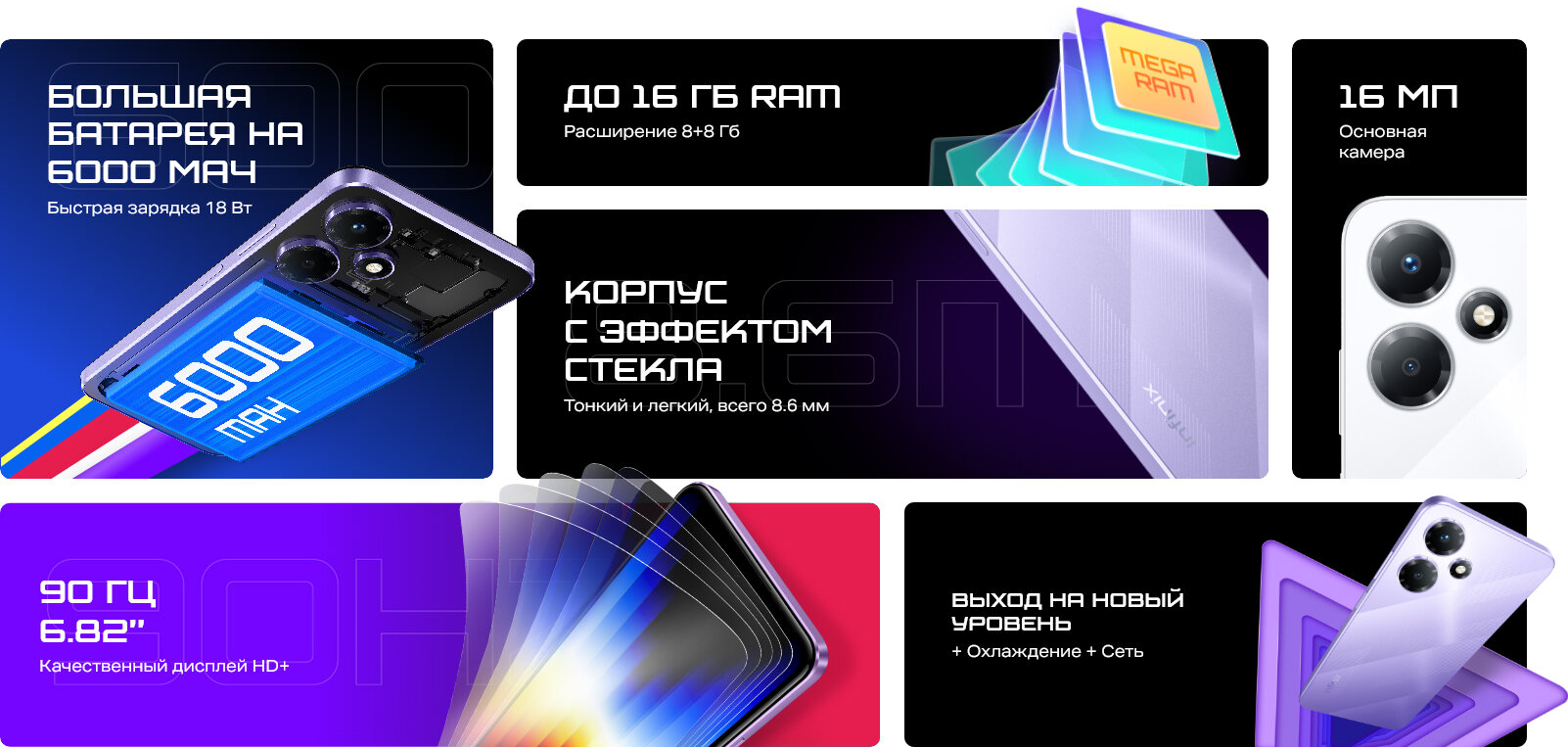 Этот смартфон обладает потрясающей производительностью благодаря своему восьмиядерному процессору Helio G37 и 8 ГБ оперативной памяти. Также он оснащен огромным 6.82-дюймовым безрамочным дисплеем с разрешением 1640x720 пикселей, который воспроизводит насыщенные цвета и яркие детали.