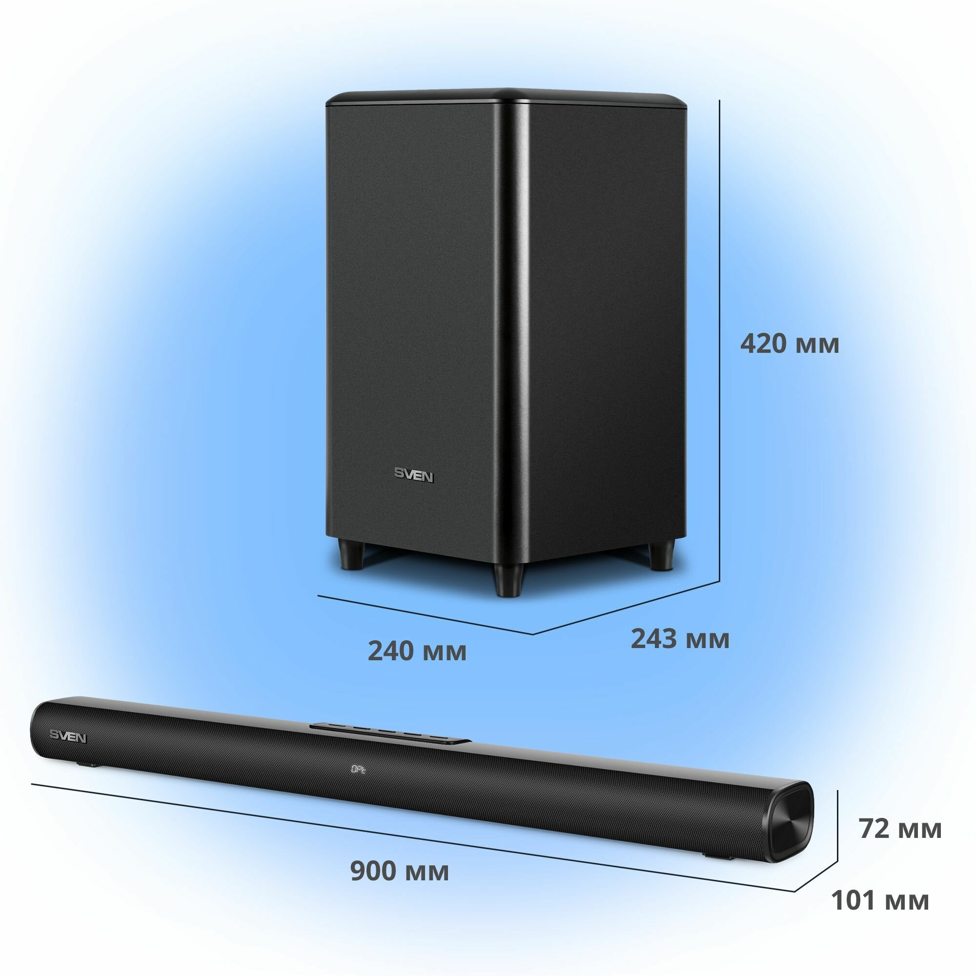 | Сабвуфер (ВхШхГ) | 240×420×243 мм |