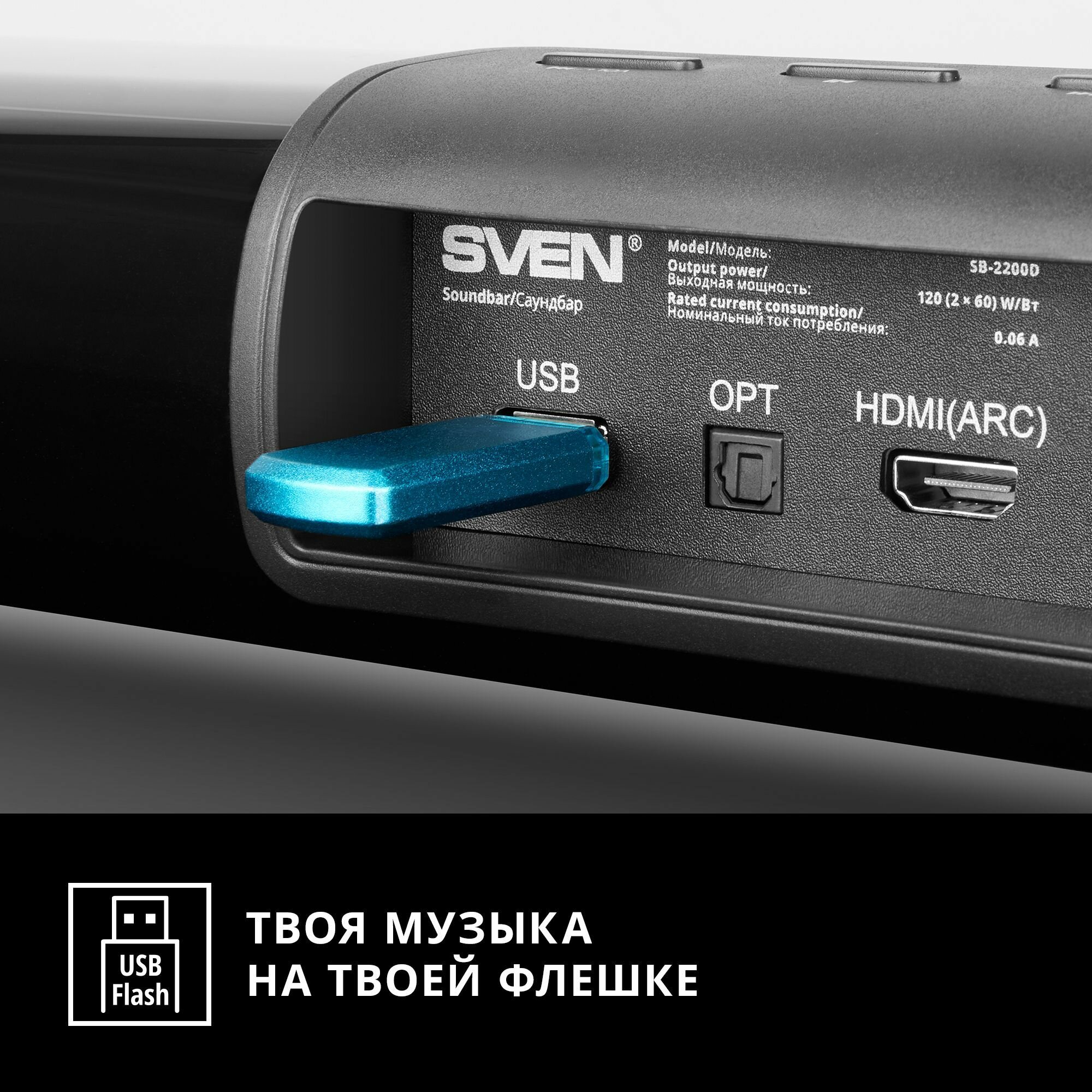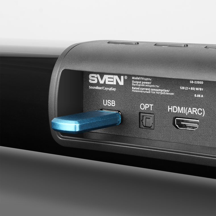 С подключением источников тоже все просто здорово – количество доступных вариантов поразительно высоко: от оптического и коаксиального цифровых входов и HDMI с поддержкой ARC до аналогового AUX с разъемом jack 3,5 мм. Есть даже Bluetooth для быстрого соединения с мобильными гаджетами. А еще модель поддерживает формат Dolby Digital, что существенно расширяет возможности воспроизведения качественного видеоконтента. Есть у SVEN и встроенный плеер – любимые треки можно записать на USB-накопитель и всегда держать под рукой.