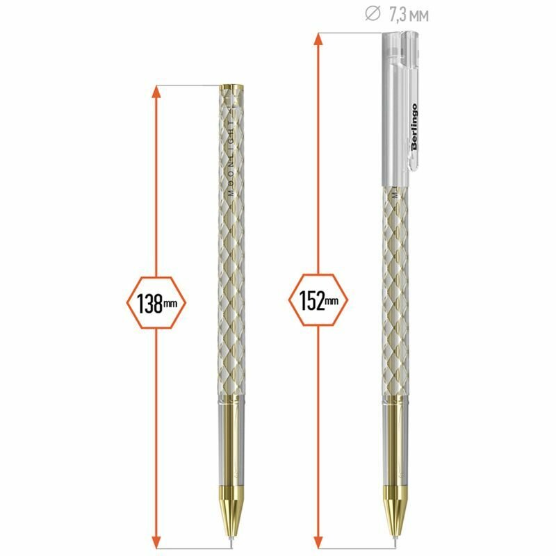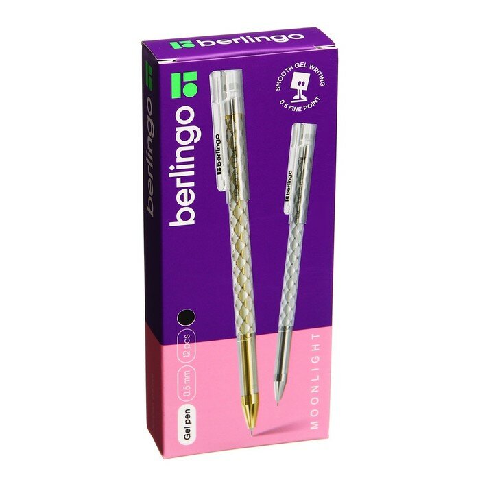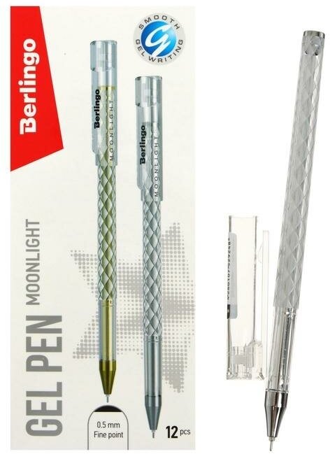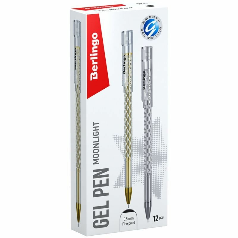 Товар представлен в ассортименте без возможности выбора модели! Гелевая ручка Berlingo "Moonlight" выполнена в изящном круглом корпусе с оригинальной отделкой золотой и серебристой фольгой. Стержень украшен в цвет отделки корпуса, что в комплексе дает уникальное дизайнерское решение. Поставляется в коробочках по 12 штук: 6 золотых и 6 серебряных. Диаметр пишущего узла составляет 0,5 мм, благодаря чему получается тонкая, аккуратная линия.