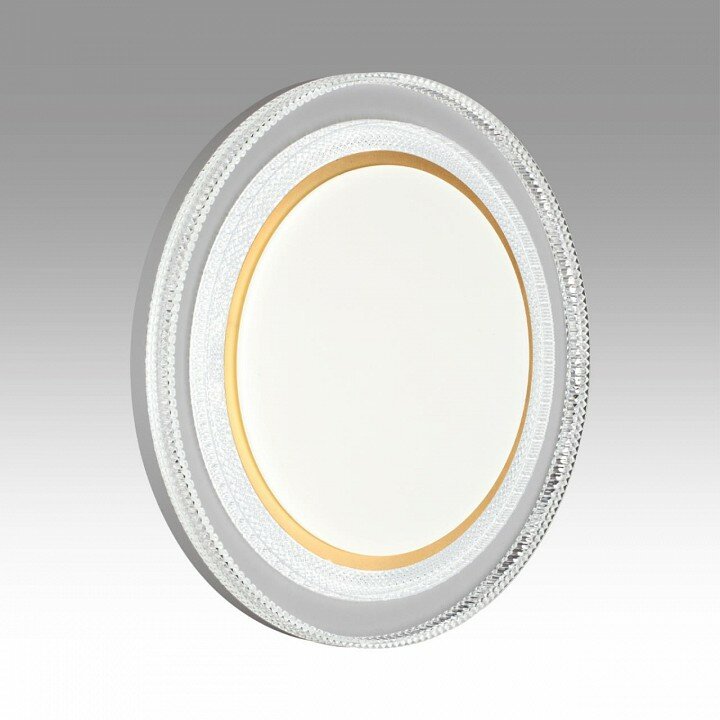 Светильник линии SUZY GOLD состоит из металлического основания (базы) и пластикового рассеивателя. Материал рассеивателя - высококачественный пластик марки PMMA 2.0 белого цвета с матовой поверхностью, без текстуры. Пластик обеспечивает светильнику равномерное рассеивание и хорошее светопропускание. Форма плафона: круглая, декорирована ободом "под хрусталь" из пластика прозрачного цвета. Обод украшен пластиковым кантом, цвет золото. Степень защиты IP43 позволяет использовать светильник в определенных зонах влажных помещений. В комплект входит заменяемый LED модуль с линзами, мощностью 70Вт, которая соответствует лампе накаливания 610Вт. А также пульт ДУ (с креплением на стену), с помощью которого осуществляется плавное изменение цветовой температуры 3000-6000К, изменение яркости, переход в режим переключения теплого/белого/холодного/ночного света. Светильник имеет функцию "память".
