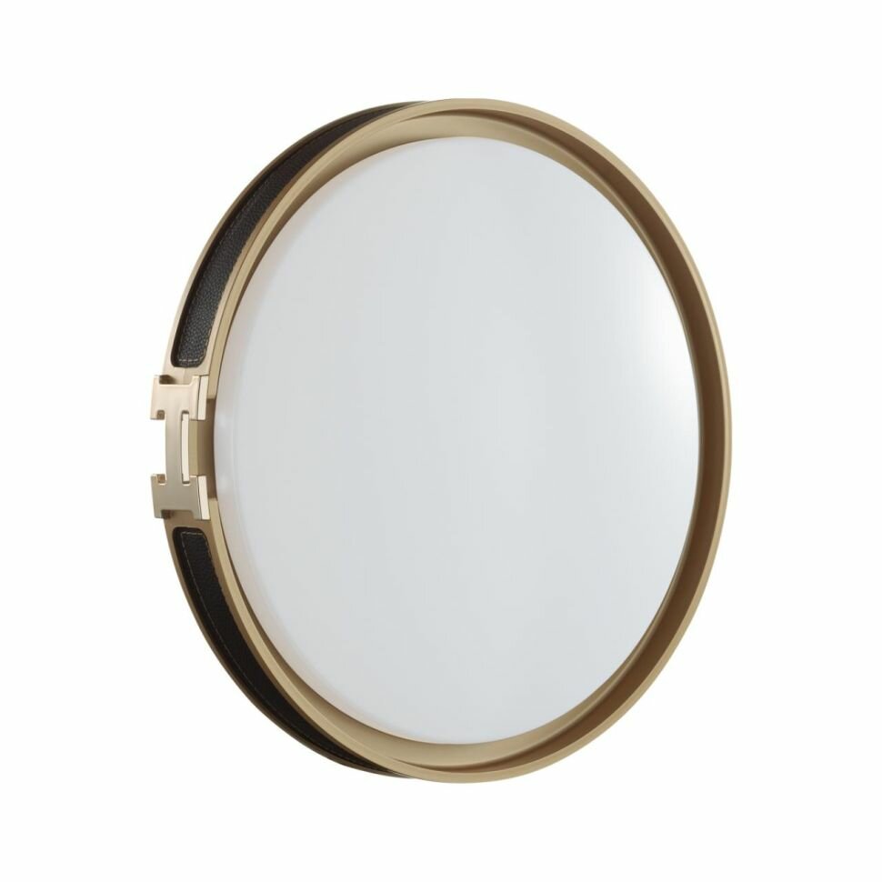 Светильник линии FAVEMO BLACK состоит из металлического основания (базы) и пластикового рассеивателя. Материал рассеивателя - высококачественный пластик марки PMMA 2.0 белого цвета с матовой поверхностью. Пластик обеспечивает светильнику равномерное рассеивание и хорошее светопропускание. Форма плафона: круглая, декорирована ободом из искусственной кожи черного цвета. Обод украшен декоративной вставкой в виде пряжки ремня из пластика, цвет золото. Степень защиты IP43 позволяет использовать светильник в определенных зонах влажных помещений. В комплект входит заменяемый LED модуль с линзами, мощностью 70Вт, которая соответствует лампе накаливания 610Вт. А также пульт ДУ (с креплением на стену), с помощью которого осуществляется плавное изменение цветовой температуры 3000-6000К, изменение яркости, переход в режим переключения теплого/белого/холодного/ночного света. Светильник имеет функцию "память".