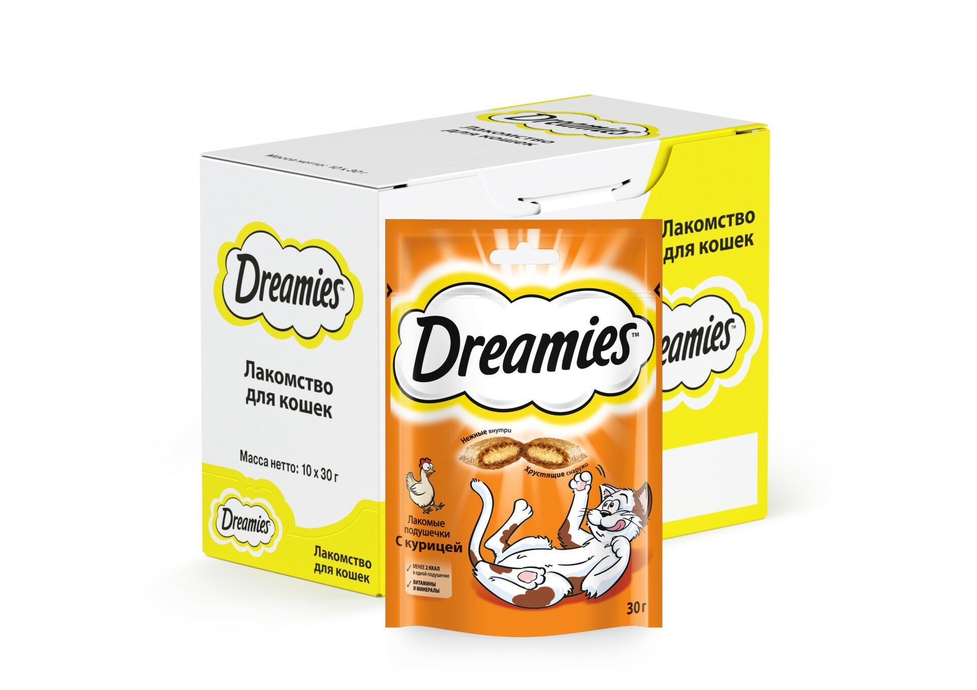 Лакомство Dreamies для кошек подушечки с курицей 140гр