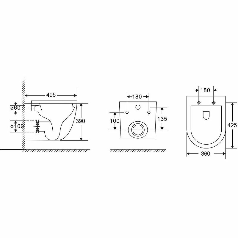 | Комплектация | безободковая чаша подвесного унитаза; комплект крепежа; крышка |