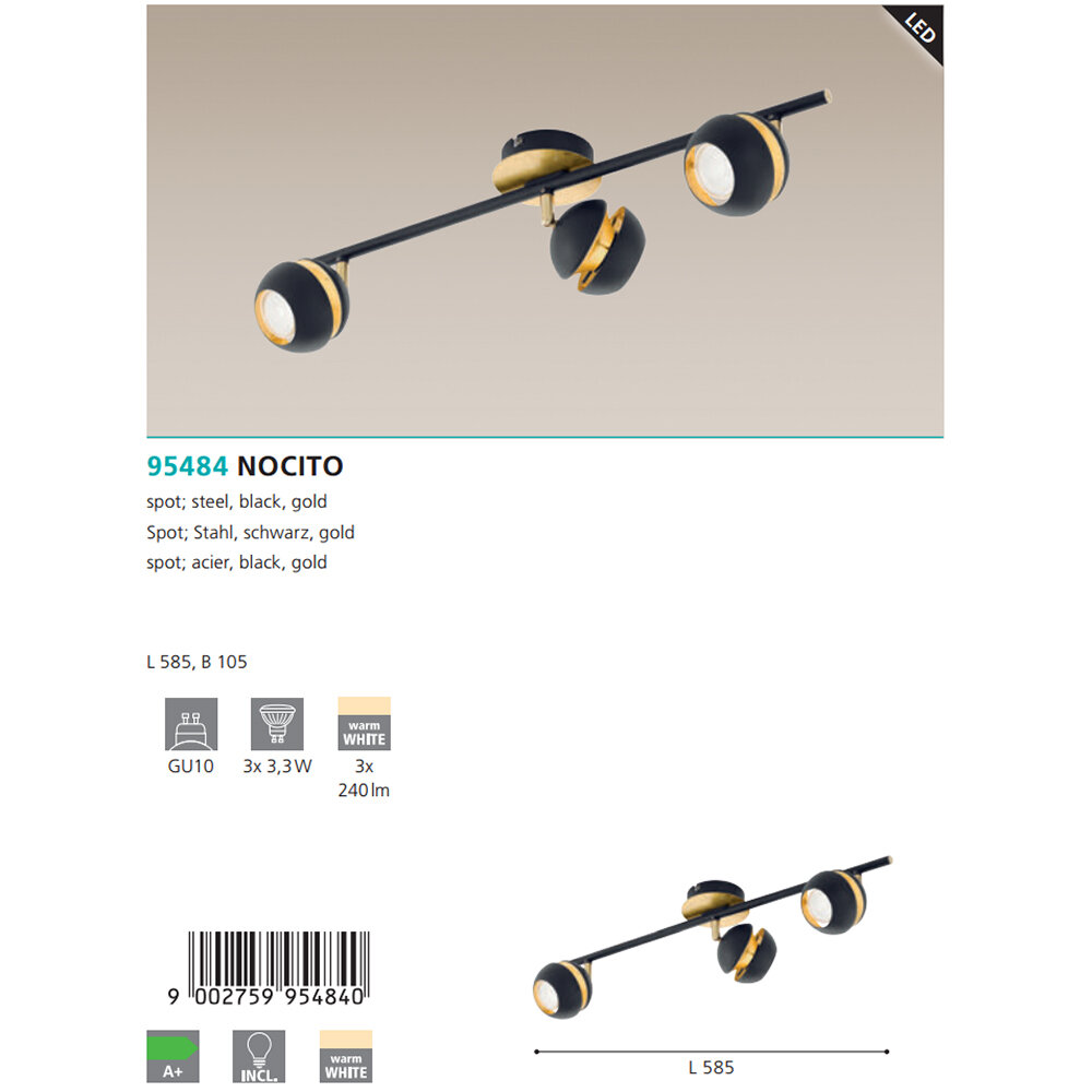 Спот NOCITO 3X4Вт GU10 (LED) сталь, черный, золотистый, L585 B105 мм.