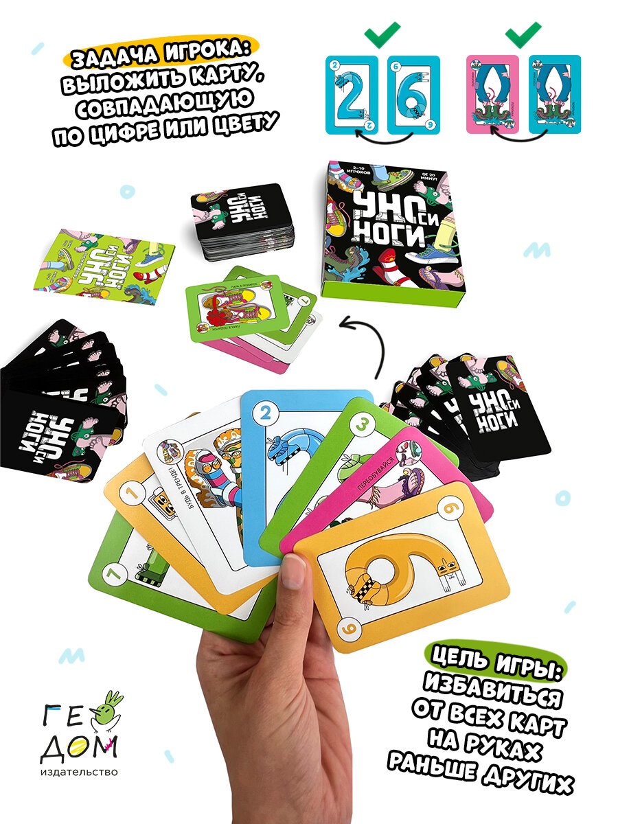 "УНОси ноги” - это захватывающая настольная карточная игра от компании ГЕОДОМ.
