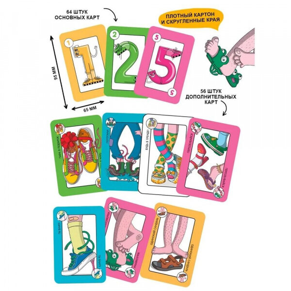 Упаковка игры включает 120 карт с яркими и забавными иллюстрациями, что делает процесс игры еще более увлекательным и запоминающимся.