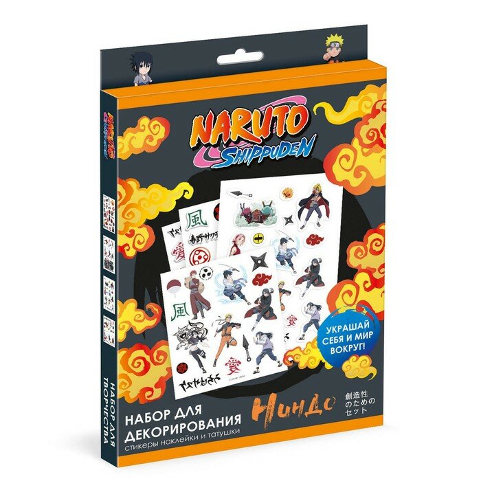 Naruto. Набор для декорирования. Ниндо, станет вашим верным спутником в поиске собственного стиля и приключений. Отправляйтесь в увлекательное путешествие вместе с героями из вашего любимого аниме, обнаруживая множество возможностей для творчества и самовыражения. Наклейки - это простой способ превратить обычные вещи в уникальные! Выбери понравившиеся картинки и украшай ими любые предметы. С помощью объемных стикеров Паффи или переводных татуировок можно ощутить настоящий дух ниндзя!