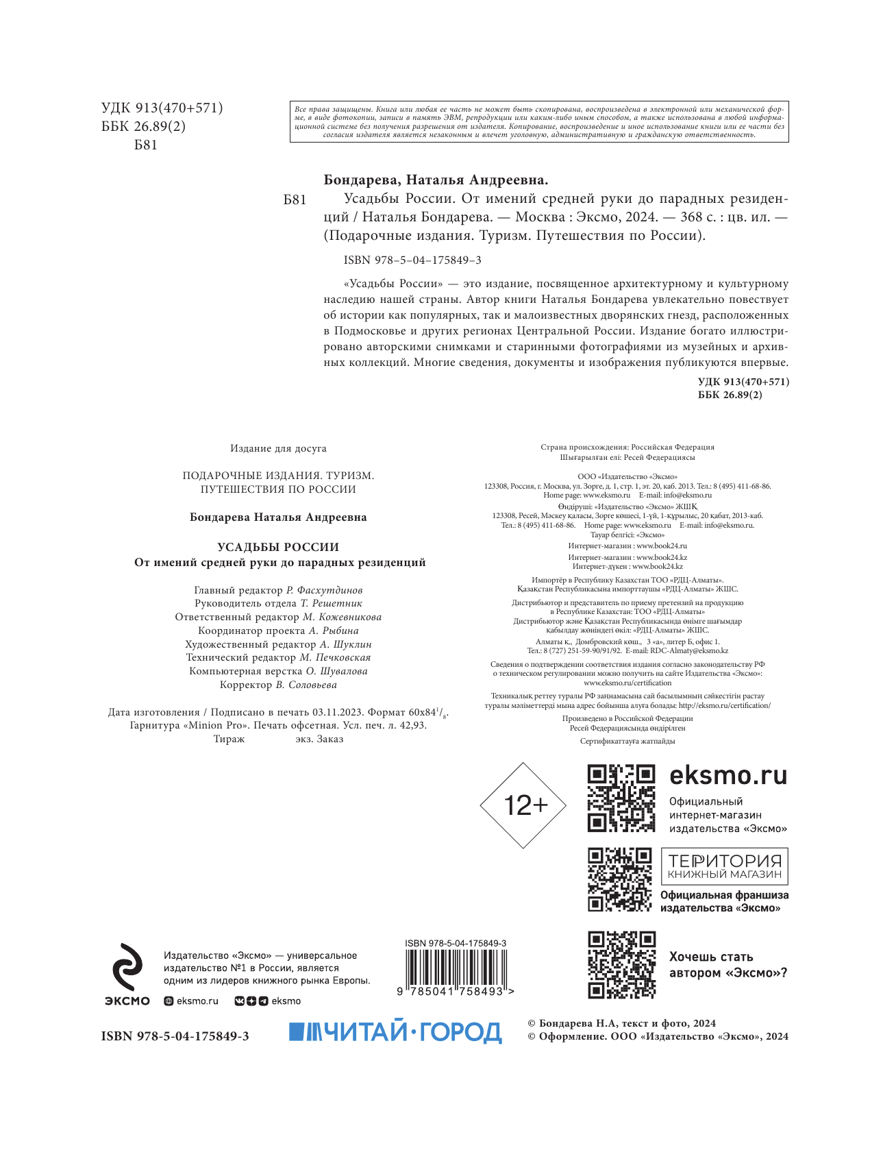 Усадьбы России. От имений средней руки до парадных резиденций (Бондарева Н.А.); ООО "Издательство "Эксмо", 2023