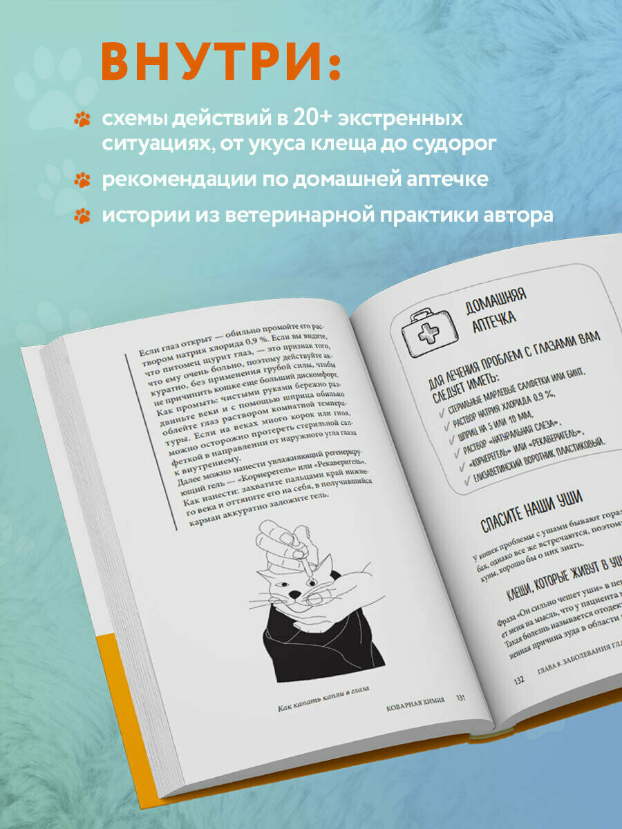 Эта книга — не просто сухой пересказ теории, в ее основе — богатый опыт ветеринарного врача Марины Руденко. Текст разделен на удобные главы, посвященные самым популярным кошачьим болезням и травмам, способам домашней диагностики и лечения. Понятные иллюстрации дополняют теоретические описания.