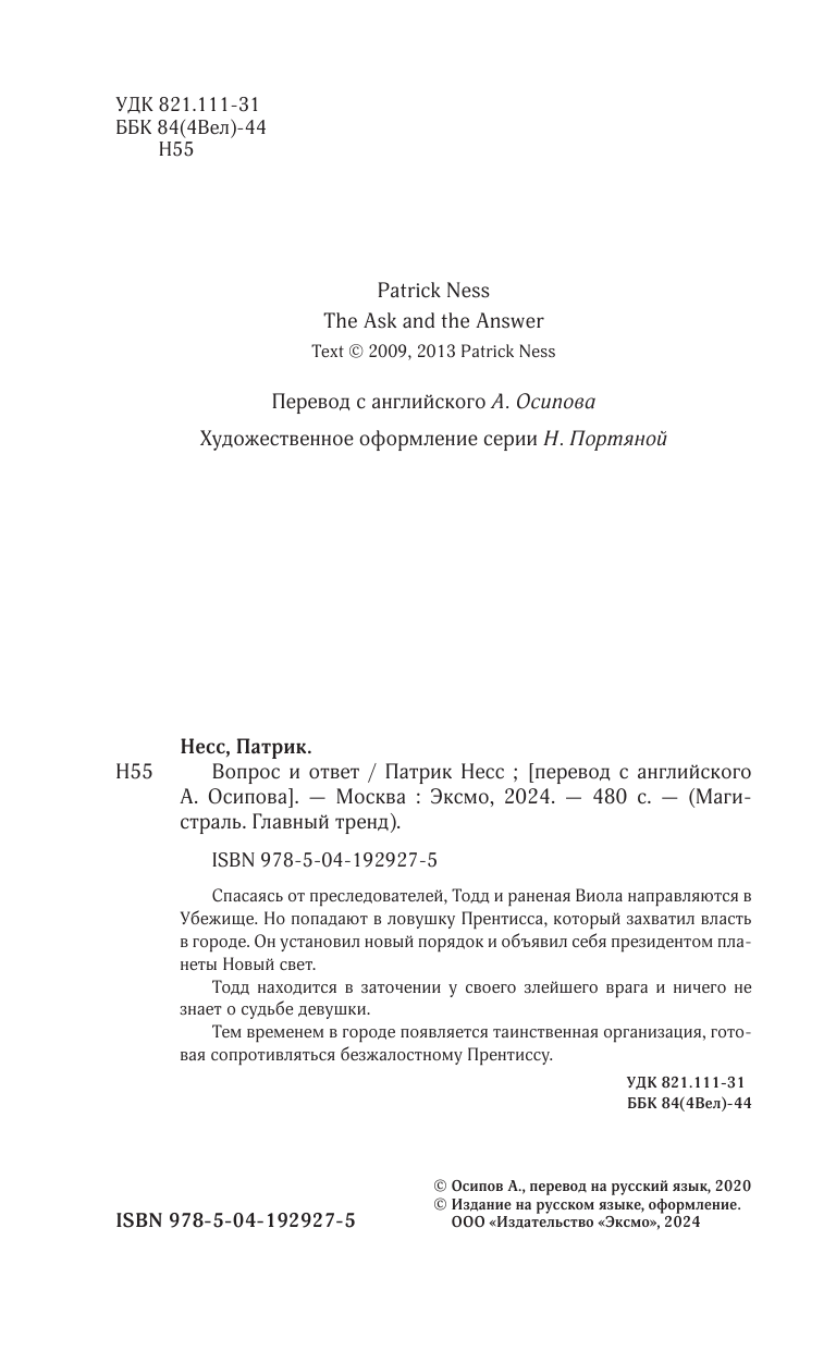 Книга: Вопрос и ответ (Несс Патрик); ООО "Издательство "Эксмо", 2023