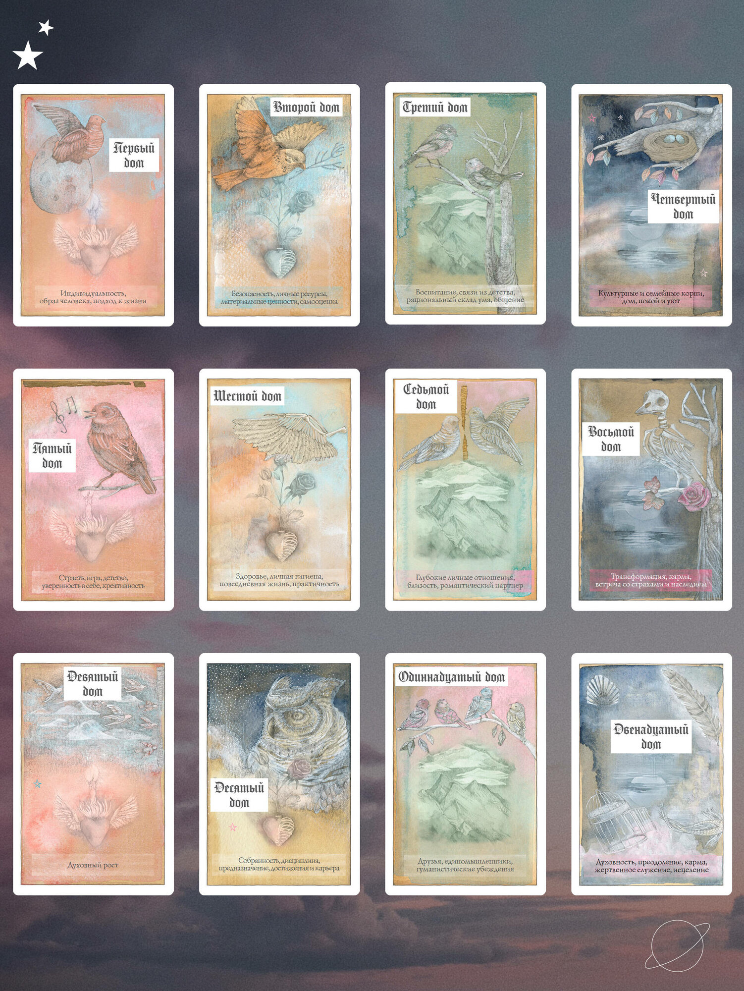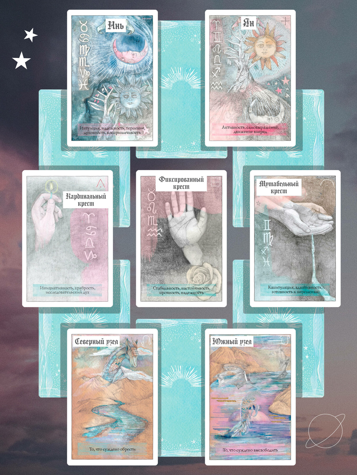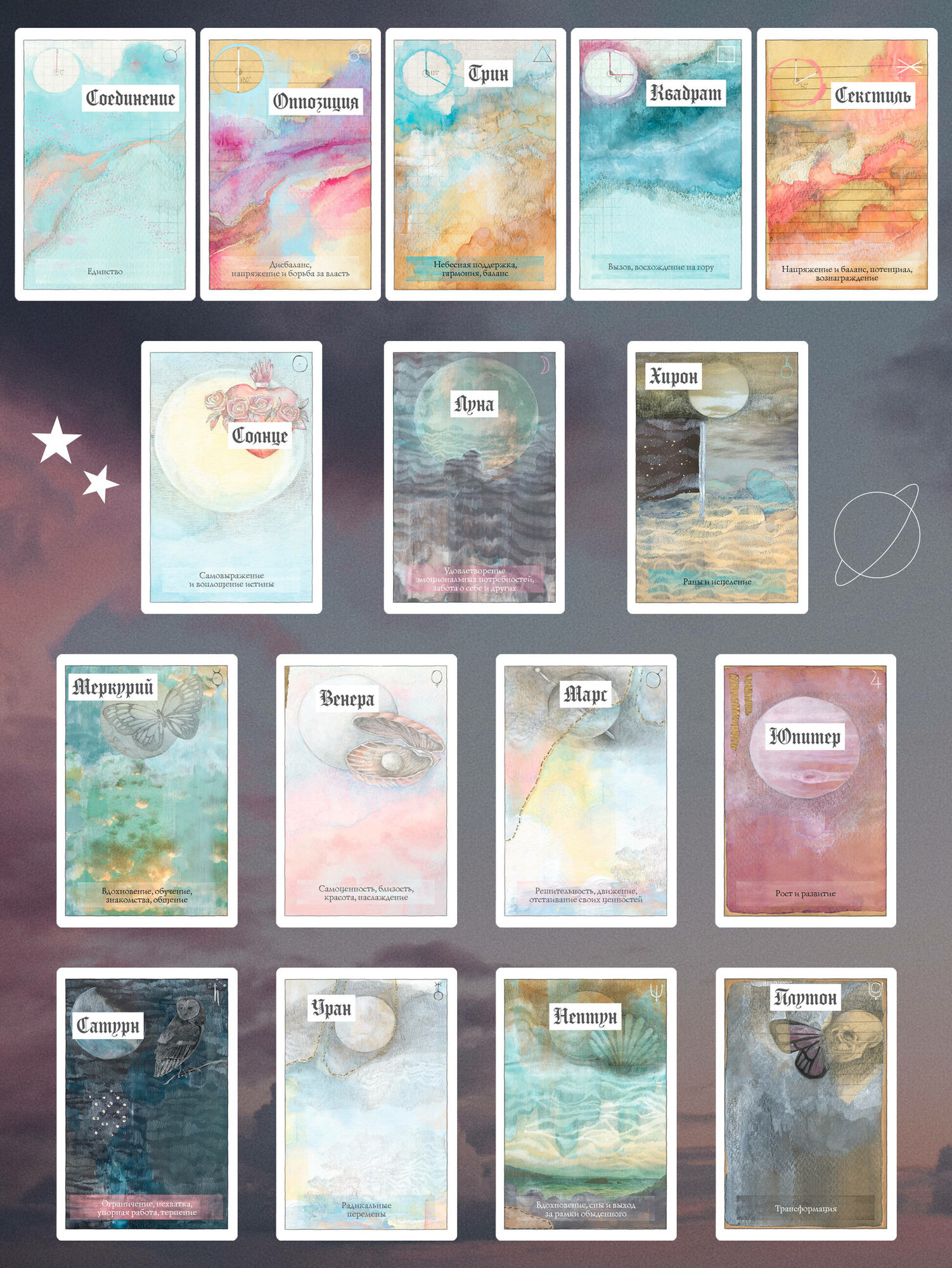 Неважно, знакомы вы с астрологией или нет, эта колода даст ответы на все ваши вопросы. Карты дадут подсказку, покажут будущее, подробно опишут личность человека и посоветуют, как быть в сложившейся ситуации, а также помогут изучить основы астрологии. Колоду можно использовать самостоятельно и как дополнение в раскладах с классическими картами Таро.