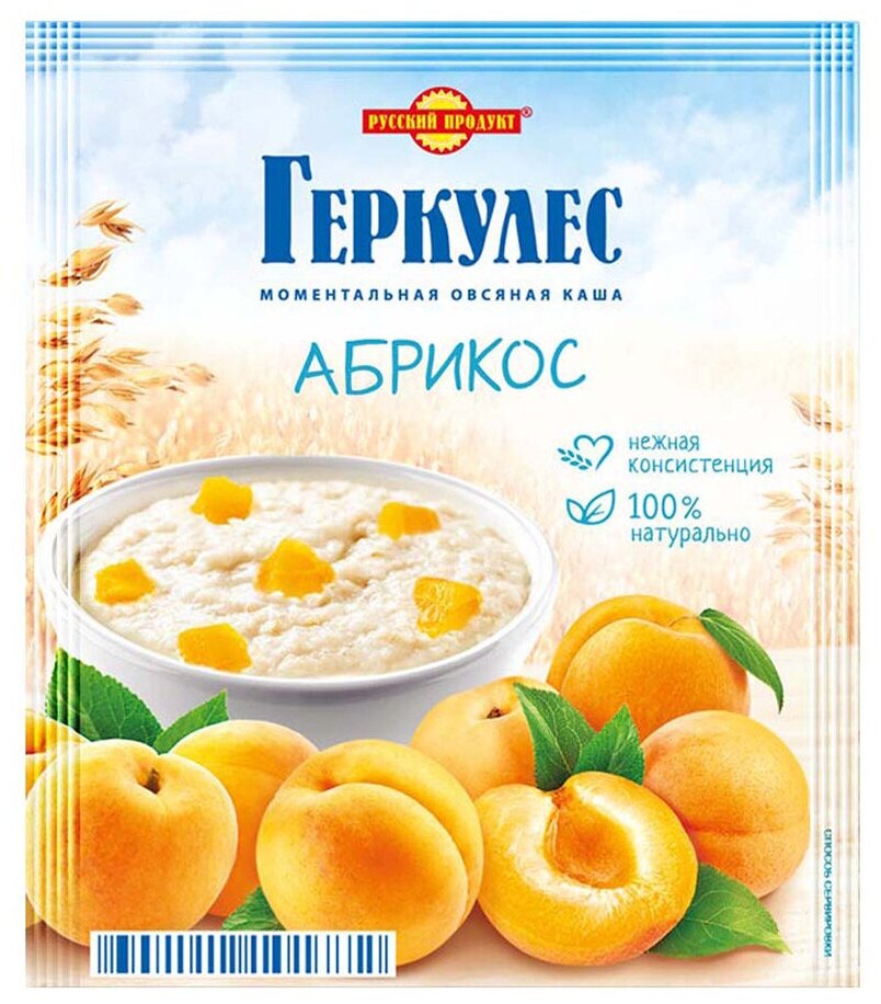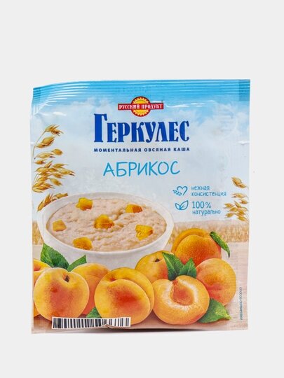 Овсяная каша "Геркулес" с абрикосами для полезного, вкусного и быстрого завтрака. Время приготовления - всего пара минут. Содержит натуральные пищевые волокна, которые при регулярном употреблении помогают улучшить пищеварение.