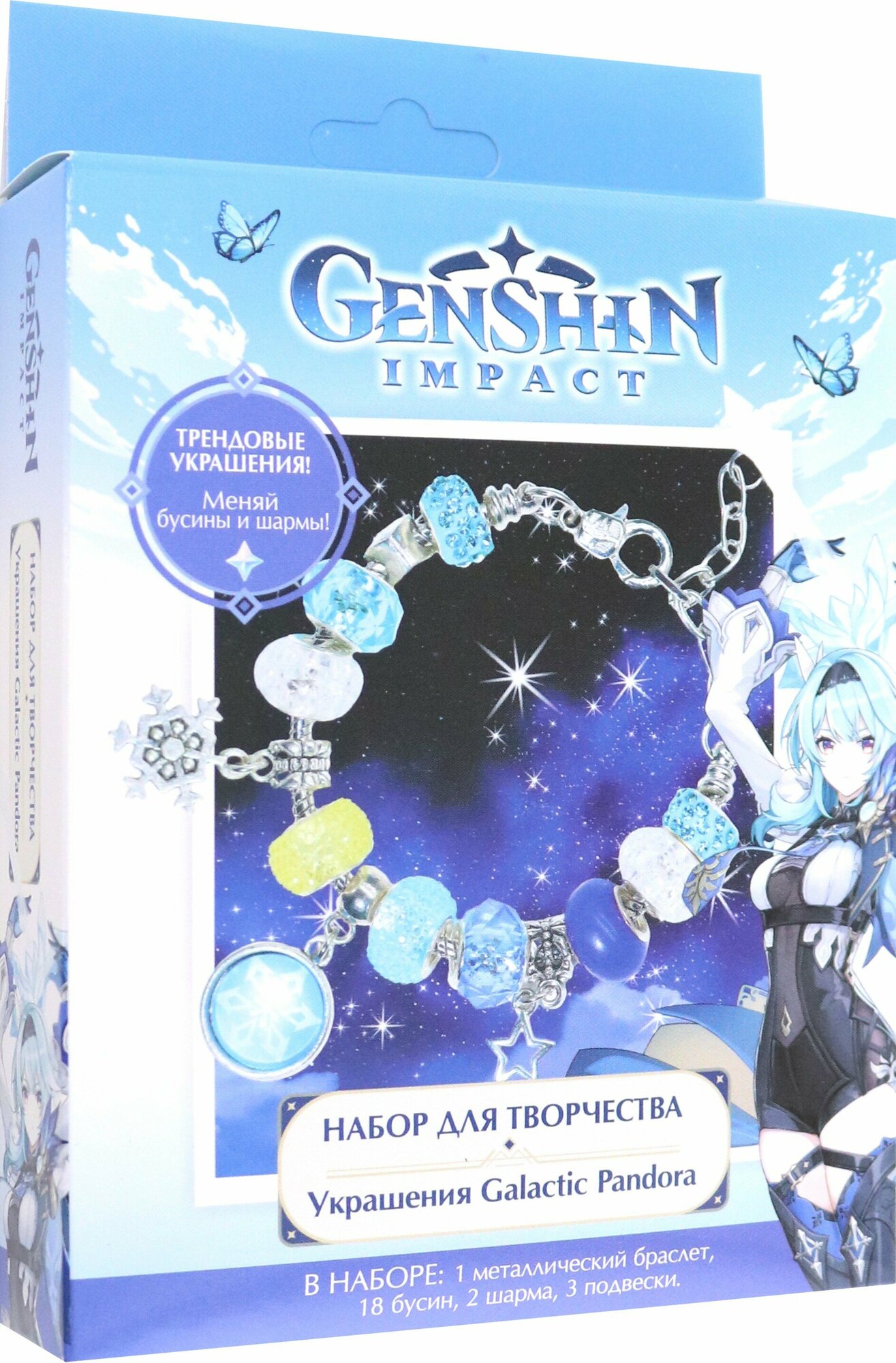 В НАБОРЕ: 1 металлический браслет, 18 бусин, 2 шарма, 3 подвески.