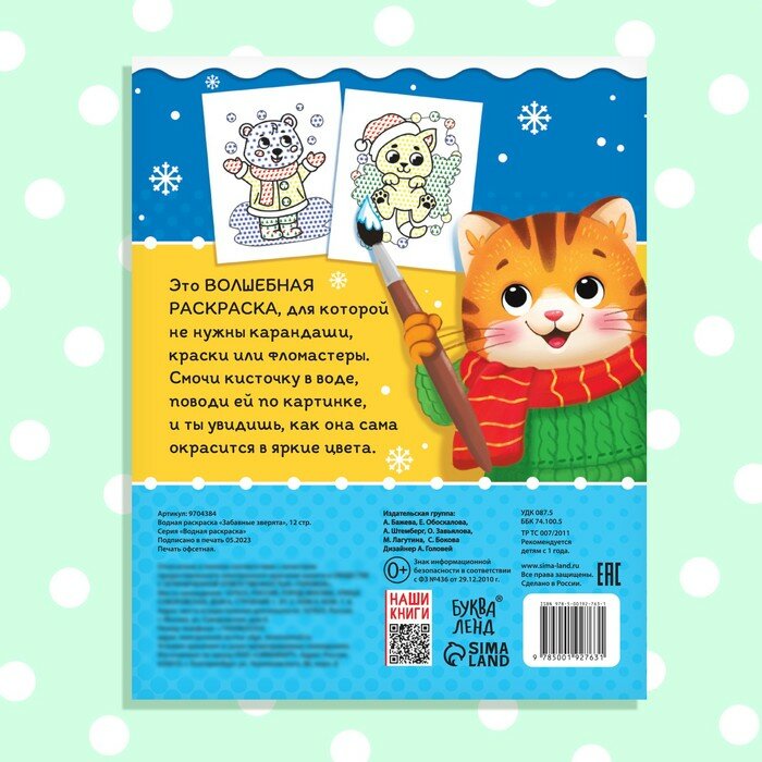 Водная раскраска Забавные зверята; Буква-ленд, 2023