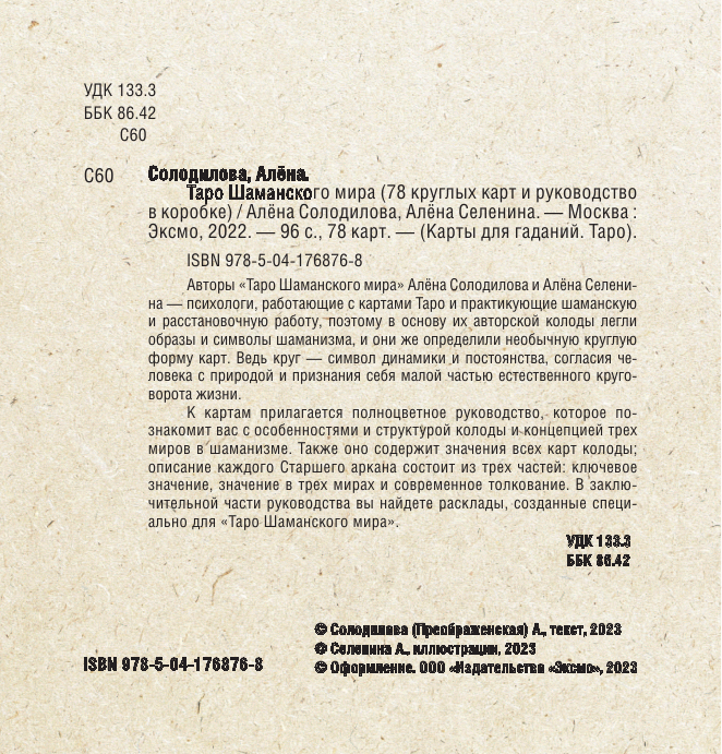 Таро Шаманского мира. 78 круглых карт и руководство (Селенина Елена Николаевна, Солодилова Елена Николаевна); ООО "Издательство "Эксмо", 2023
