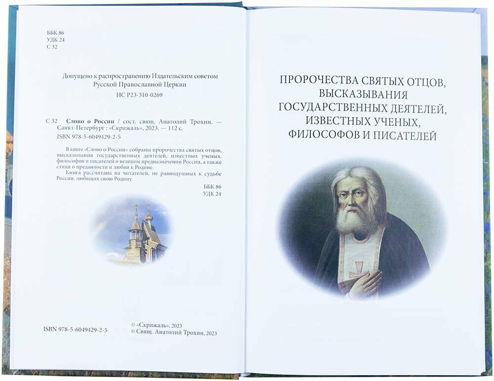 Сервис сравнения цен СкидкаГИД предлагает сравнить цены на товар «Книга: Слово о России. Пророчества святых отцов высказывание государственных деятелей; Скрижаль, 2023»