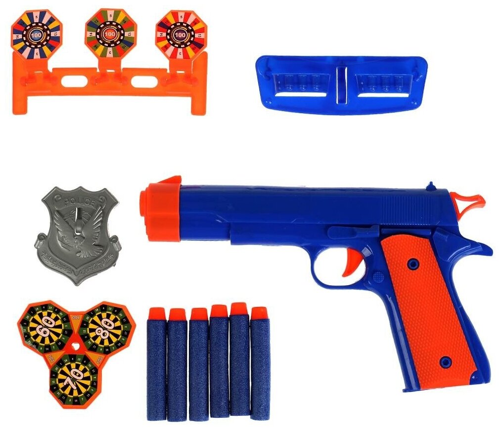 С этим игровым оружием ваш ребенок будет придумывать увлекательные спецзадания, защищать мир и стоять на страже порядка. С таким револьвером маленький герой станет самым метким стрелком. Набор подойдет для активных игр на воздухе и в помещении.