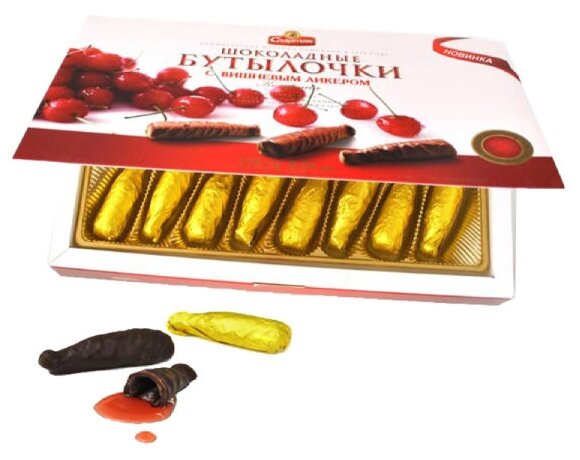| Состав | Шоколадная глазурь (сахарная пудра, какао тертое, какао-масло, эмульгаторы (лецитин соевый, Е476), ароматизатор Ванилин), сахар, водно-спиртовой настой вишни. |