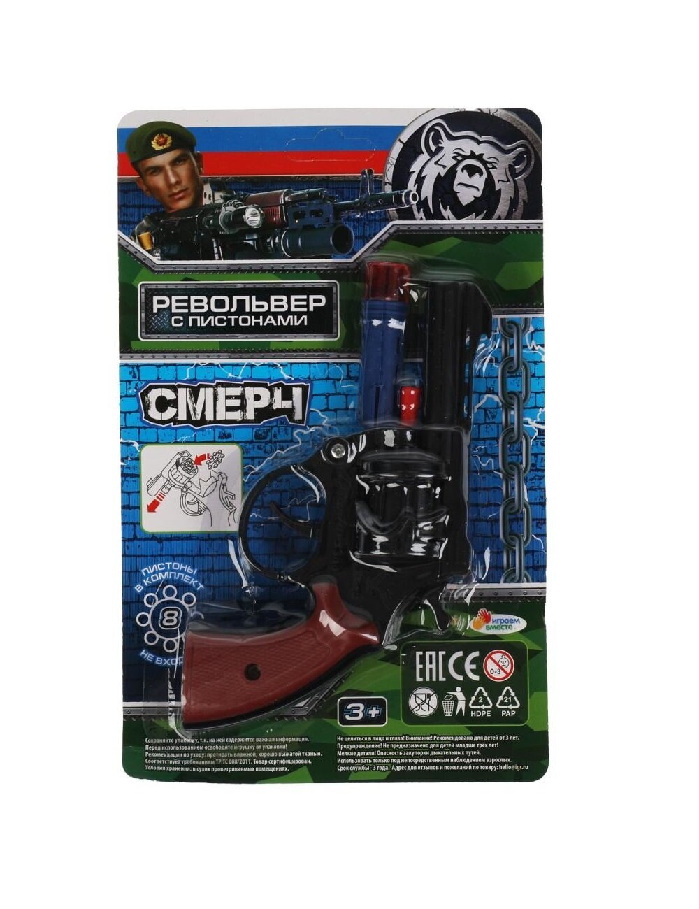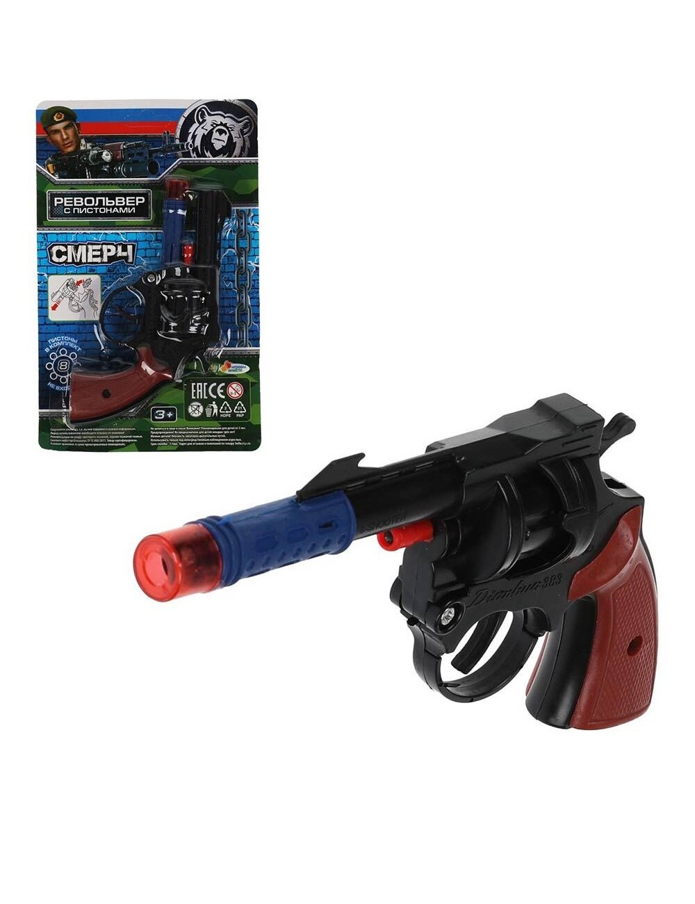 Револьвер для стрельбы пистонами Играем вместе Смерч 8 зарядов