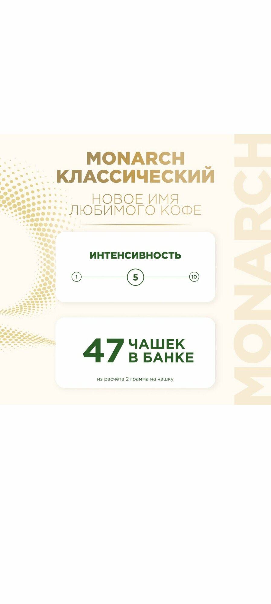Jacobs Monarch обладает богатым, классическим вкусом и притягательным ароматом, благодаря искусному сочетанию отборных кофейных зёрен и глубокой обжарке, и является наиболее популярным кофе в линейке Jacobs. Приготовьте кофе Jacobs Monarch для себя и своих близких и почувствуйте его вдохновляющую Аромагию.