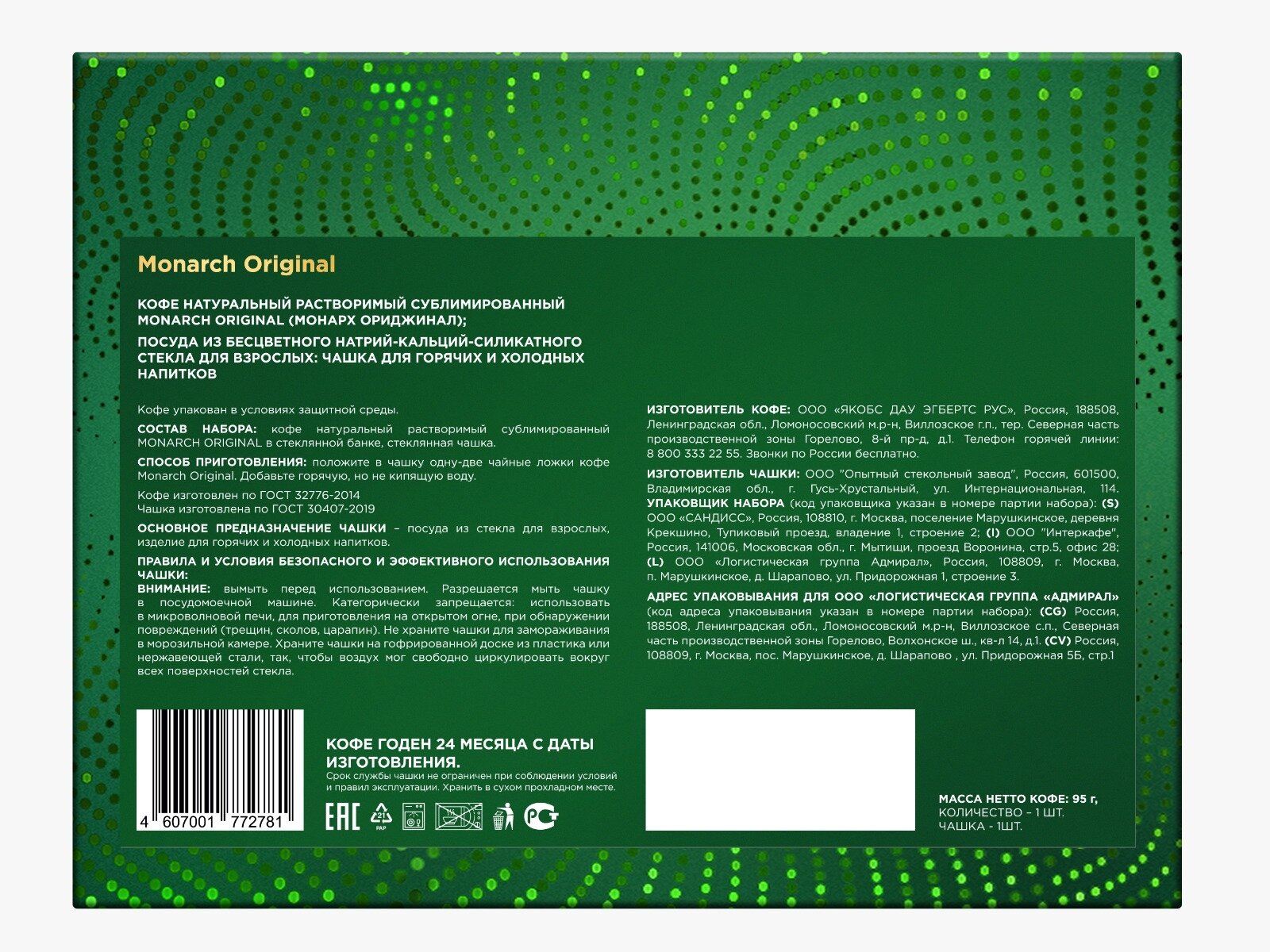 Набор подарочный JACOBS Monarch кофе растворимый 95 г + большая эксклюзивная чашка