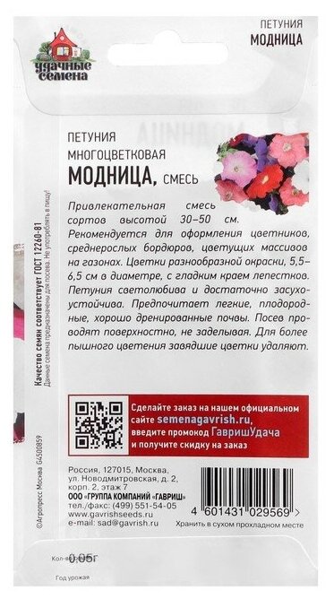 Модель: Семена Удачные семена Петуния Модница 0.05 г