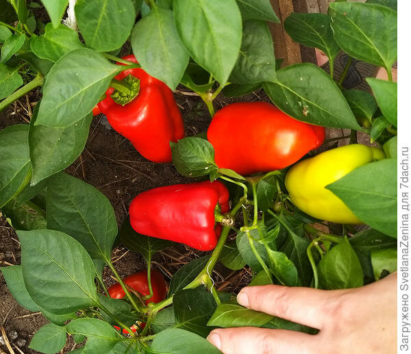 Раннеспелый (110-115 дней) гибрид для открытого грунта и пленочных укрытий. Растение раскидистое, высотой 60-70 см. Плоды пониклые, удлиненно-конусовидные, в технической спелости светло-желтые, в биологической - ярко-красные, массой 130-150 г, сочные, отличного вкуса. Толщина стенки 4-5 мм, Урожайность 6,5-7,2 кг/м.кв.