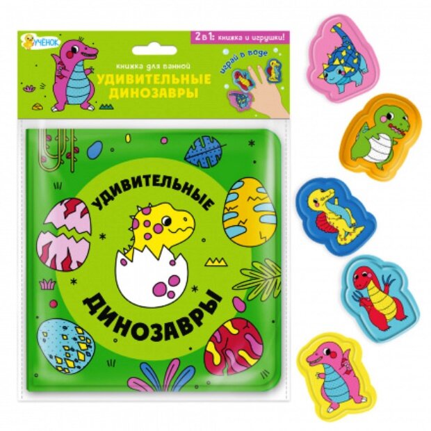 Книжка для ванной с пальчиковыми куклами «Удивительные динозавры» – полезная игрушка для самых маленьких! Играйте с пальчиковыми куклами во время купания, читайте весёлые стишки, узнавайте и изучайте, как выглядели и назывались удивительные динозавры. Проводите время вместе весело, полезно и интересно!