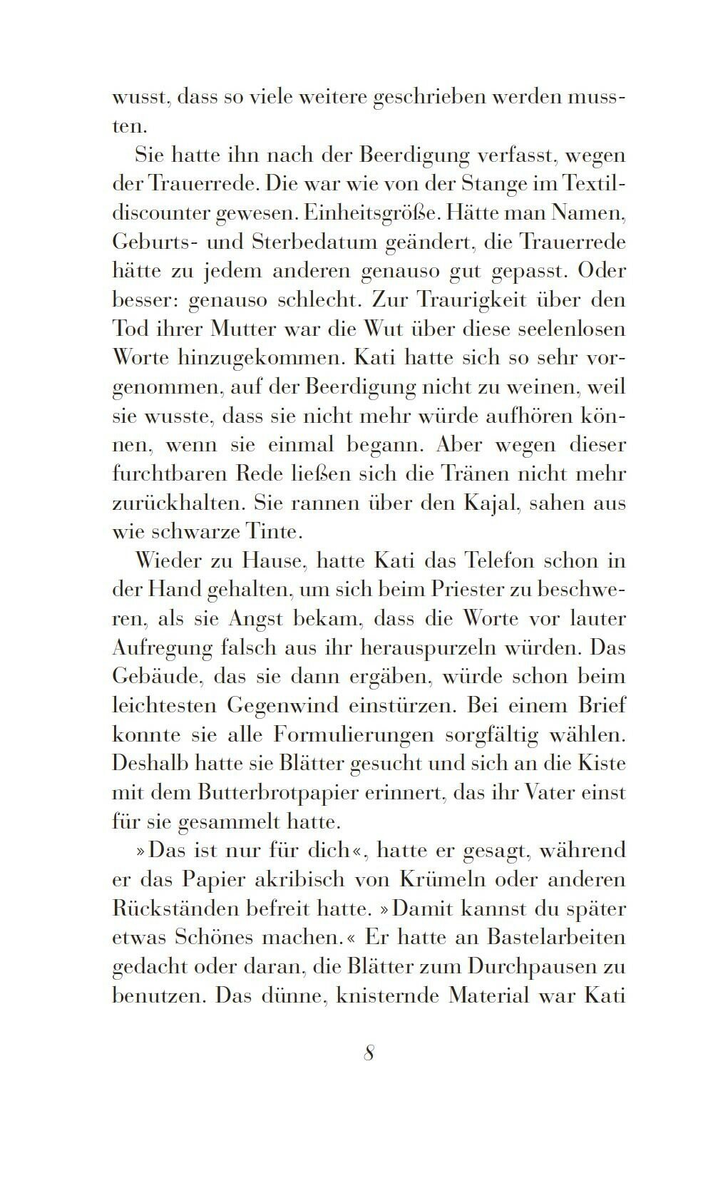 Wer schreibt heute noch Briefe? Richtige, auf Papier, mit der Hand? Kati Waldstein, die mit fast 40 ein neues Leben beginnen will und Abschiedsworte fur alle verfasst, die sie gepragt haben – egal auf welche Art. Eine freundliche Supermarktkassiererin, eine strenge Mathelehrerin, ein gleichgultiger Ex-Mann. 37 Briefe insgesamt, geschrieben auf Butterbrotpapier, das ihr Vater uber Jahrzehnte fur sie gesammelt hat.