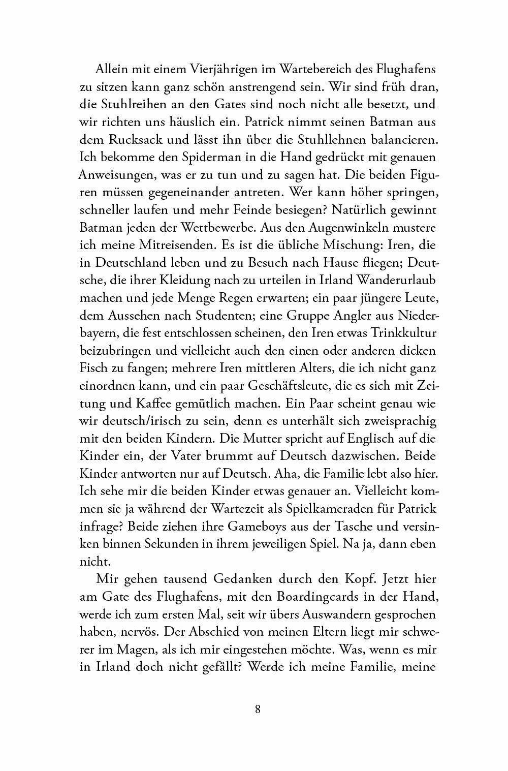 Anfang der Neunziger verlasst Elli O’Shea, geborene Elisabeth Feuchtwanger, ihr geliebtes Regensburg und folgt ihrem Mann Sean mit dem gemeinsamen Sohn Patrick nach Irland. In Carlow, einer verschlafenen Kleinstadt, wo jeder jeden kennt, beziehen sie ein vorsintflutlich mobliertes Reihenhaus, in unmittelbarer Nahe von Ellis Schwiegereltern.