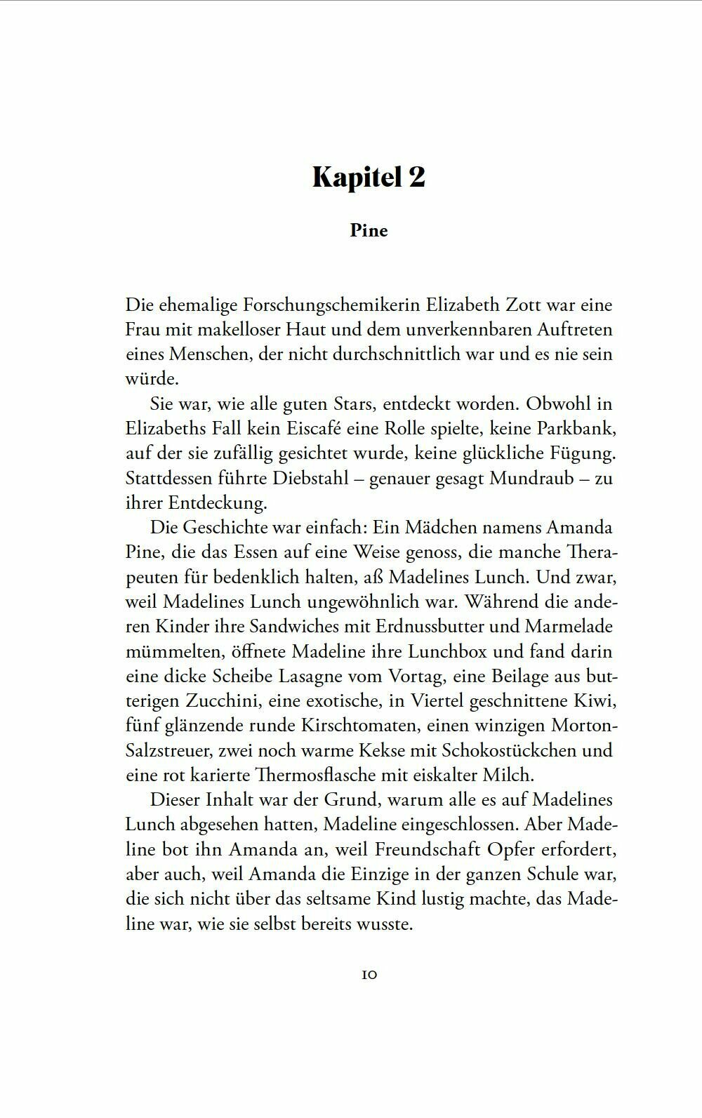 Elizabeth Zott ist eine Frau mit dem unverkennbaren Auftreten eines Menschen, der nicht durchschnittlich ist und es nie sein wird. Doch es ist 1961, und die Frauen tragen Hemdblusenkleider und treten Gartenvereinen bei. Niemand traut ihnen zu, Chemikerin zu werden. Au?er Calvin Evans, dem einsamen, brillanten Nobelpreiskandidaten, der sich ausgerechnet in Elizabeths Verstand verliebt. Aber auch 1961 geht das Leben eigene Wege. Und so findet sich eine alleinerziehende Elizabeth Zott bald in der TV-Show „Essen um sechs“ wieder. Doch fur sie ist Kochen Chemie. Und Chemie bedeutet Veranderung der Zustande ...