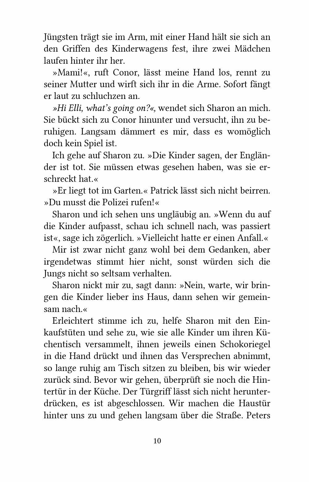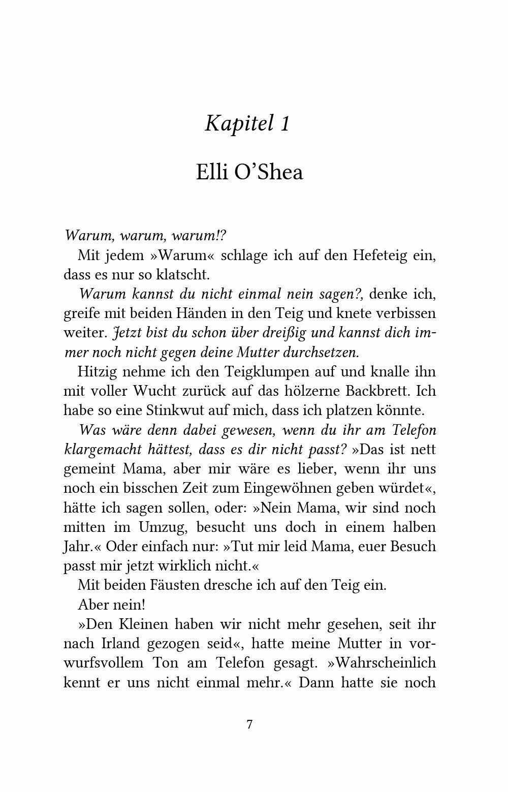 Elli O'Shea, geborene Elisabeth Feuchtwanger, hadert mit sich und der Welt. Warum kann sie nicht einfach mal Nein sagen? Kaum haben sie und ihr Mann Sean mit dem gemeinsamen Sohn Patrick ihre neue Doppelhaushalfte in Abbey View, einer neuen Wohnsiedlung in der irischen Kleinstadt Celbridge in der Grafschaft Kildare, bezogen, als sich auch schon ihre Eltern aus Bayern zu Besuch anmelden. Die Bilder hangen noch nicht an den Wanden, als Ellis Eltern das Gastezimmer beziehen. Dann findet ausgerechnet ihr kleiner Sohn Patrick den nervigen Nachbarn tot in seinem Garten liegen. Mit einem Loch in der Stirn. Ellis Vater, Manfred Feuchtwanger, seines Zeichens pensionierter Kriminalhauptkommissar, la?t es sich nicht nehmen, ein bisschen zu ermitteln. Ellis Mutter versucht alles, um ihre Tochter zur Ruckkehr nach Regensburg zu uberreden. Doch die hat andere Plane. Sie will gemeinsam mit Tadhg Kelly eine Privatdetektivagentur eroffnen. Nicht ahnend, dass Tadhg mit eigenen Problemen zu kampfen hat ...