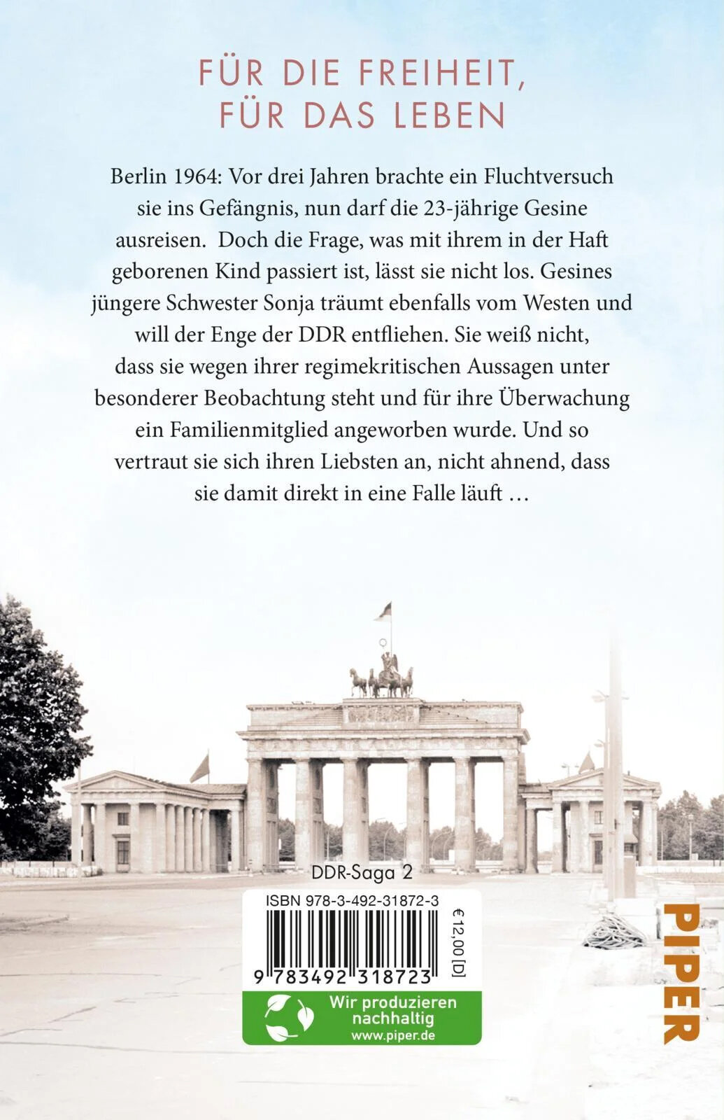 Berlin 1964: Nach der Haft darf Gesine ausreisen, doch die Frage, was mit ihrem Kind passiert ist, lasst sie nicht los. Gesines Schwester Sonja steht wegen DDR-kritischer Aussagen unter besonderer Beobachtung. Dass fur ihre Uberwachung ein enges und geliebtes Familienmitglied angeworben wurde, wei? Sonja nicht. Und so vertraut sie sich ihren Liebsten an, nicht ahnend, dass sie in eine Falle laufen konnte. Mutter Lotte bleibt mit ihrer jungsten Tochter Lydia in Ostberlin. Denn beim Nesthakchen der Familie zeigt sich ein sportliches Talent, das Lotte von einer besseren Zukunft traumen lasst.