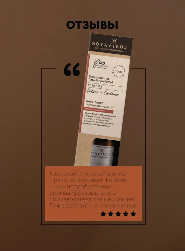 | Аромат | Ветивер, Кардамон |